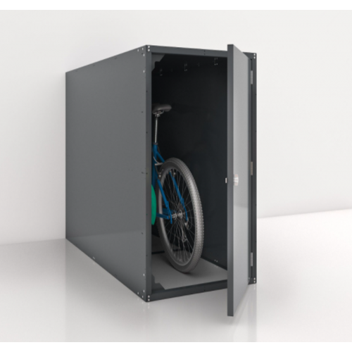 Велобокс предназначен для хранения велосипеда и сопутствующей экипировки. Он сделан из прочных металлических панелей, покрытых полиэфирной порошковой краской, устанавливаемых на платформу, которая крепится к основанию с помощью анкерных болтов.